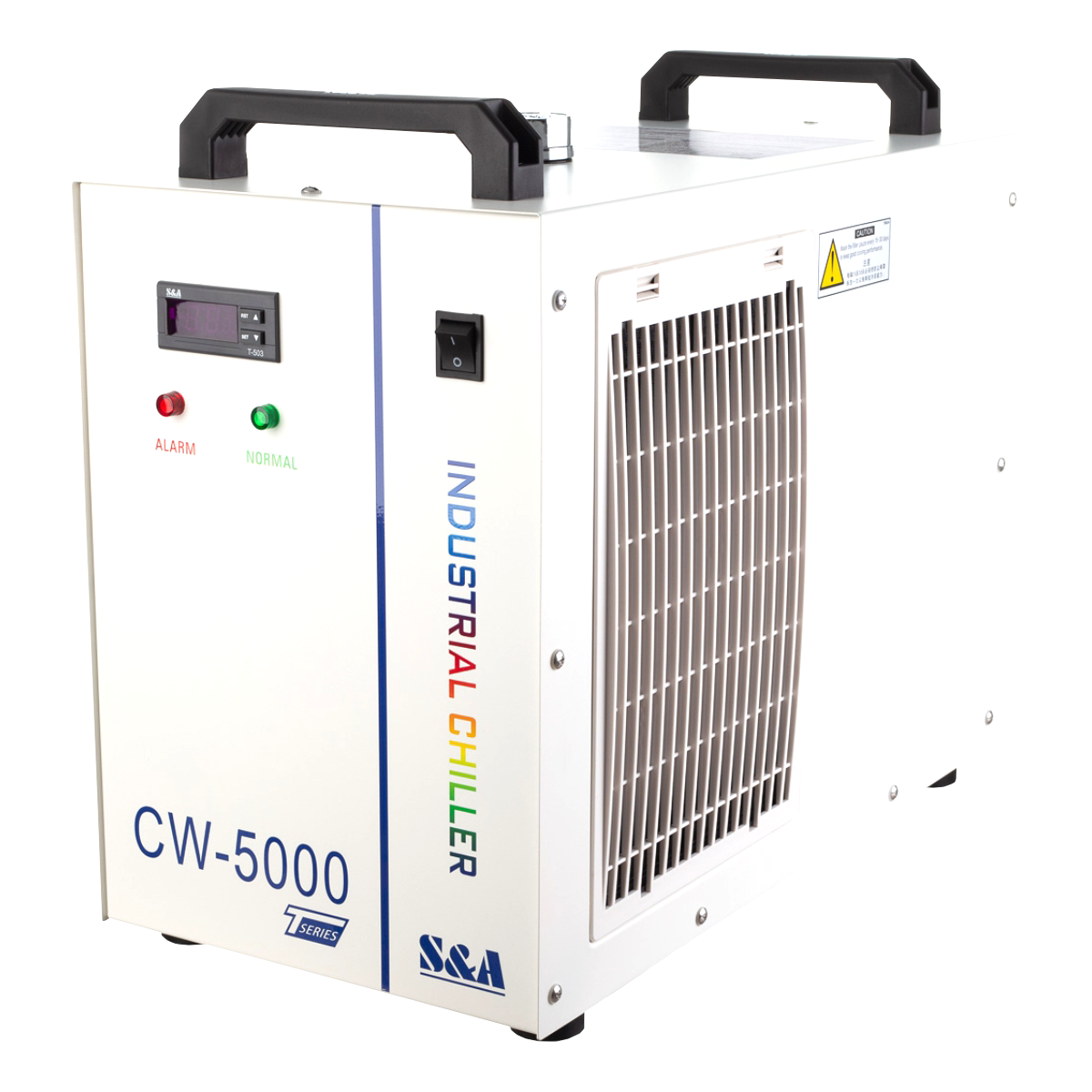 O Chiller de Água S&A (CW3000, CW5000 e CW5200) garante o resfriamento eficiente de tubos laser CO2, prolongando sua vida útil e mantendo o desempenho ideal da máquina. Compatível com lasers 40W a 150W, oferece controle térmico preciso, baixo ruído e alta durabilidade. Ideal para quem busca estabilidade e segurança em máquinas de corte e gravação a laser.